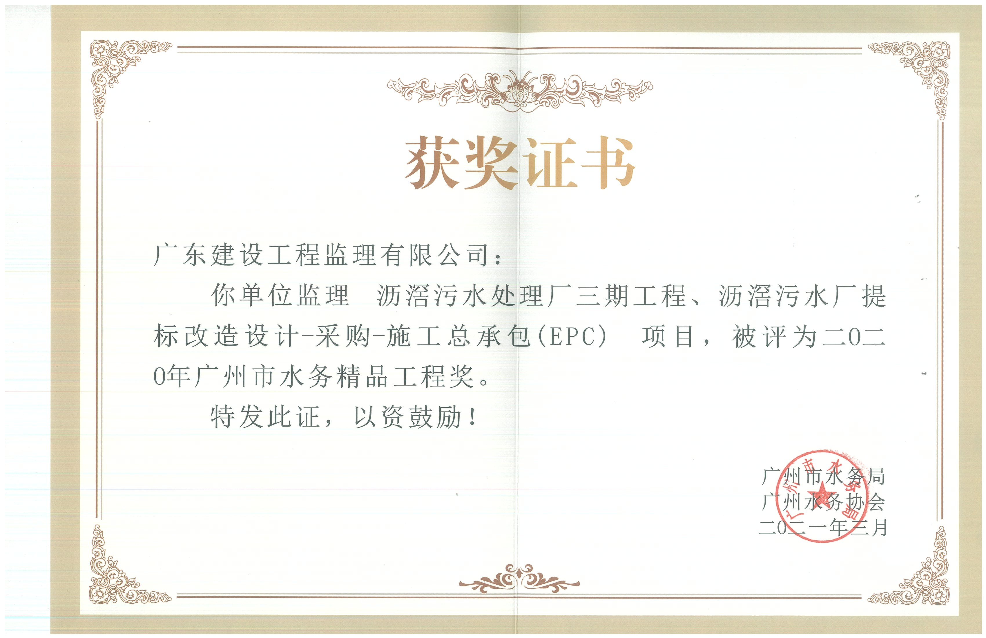 此次获奖表明广州市水务局及广州市水务协会对我公司监理工作的认可,对公司在本行业内的形象起到了十分积极的作用,也为我公司以后在污水处理领域的发展奠定了坚实的基础和坚定的信心。