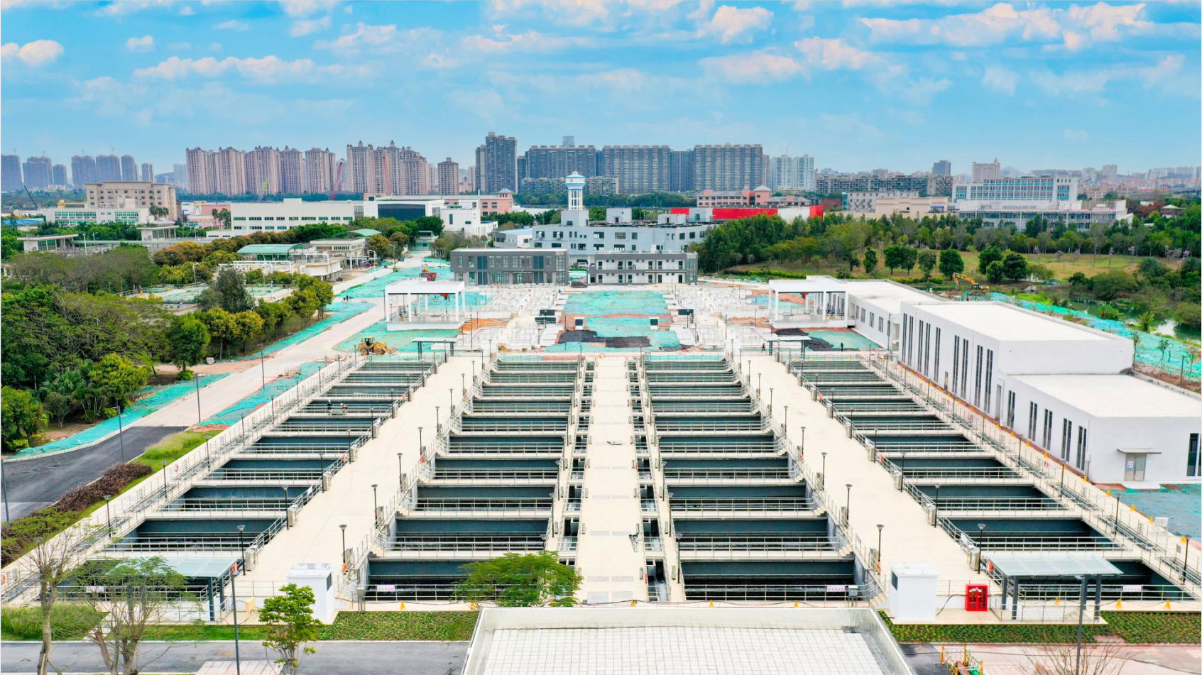 该项目位于广州市海珠区小洲工业区,南洲路北侧、瀛洲生态公园西侧、华南快速东侧,占地面积约15公顷。服务范围为海珠区中东部、番禺区大学城和黄埔区长洲岛等,总服务面积115.5平方公里,原有旧厂污水处理规模为25万吨/日,建成后项目总规模达到75万吨/日,设计采用A2/O工艺,出水水质达到污水处理厂国标一级A标准及地表水V类标准较严值;同时采用地下污水处理、地上海绵生态公园的设计理念,充分利用空间资源,融功能与环保休闲为一身。节省土地占用面积。