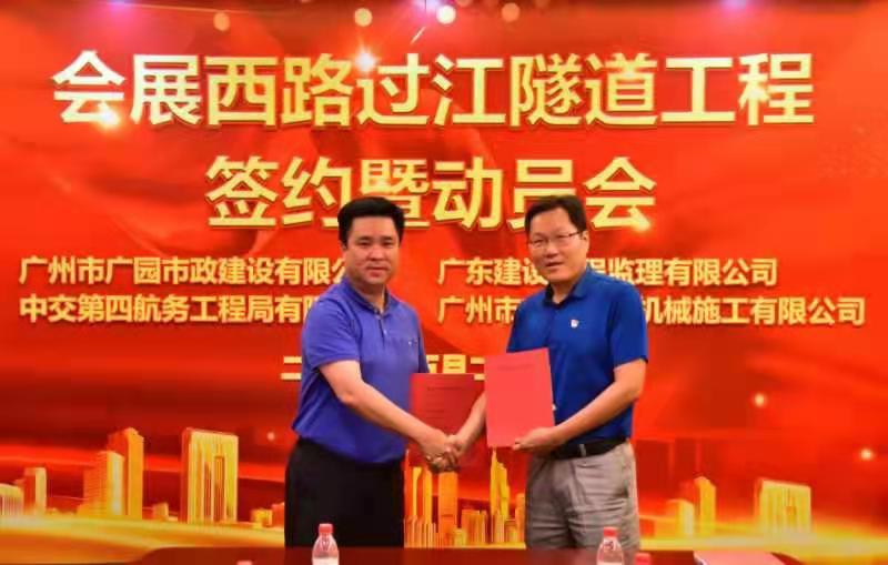 2021年5月27日16:00,由项目代建单位广州市广园市政建设有限公司牵头组织的会展西路过江隧道工程签约暨启动会顺利召开,公司总经理刘诚同志等相关人员参加会议并发表讲话。