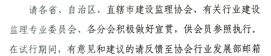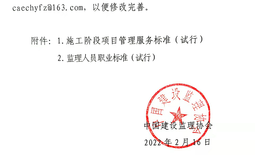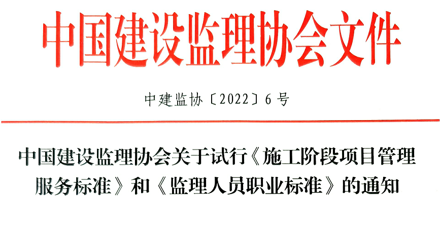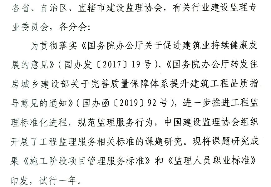 中国建设监理协会关于试行《施工阶段项目管理服务标准》和《监理人员职业标准》的通知